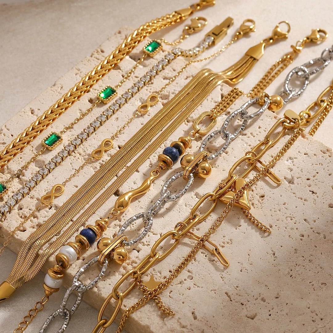 Chic Golden Stainless Steel Pearl Zircon Bracelets
