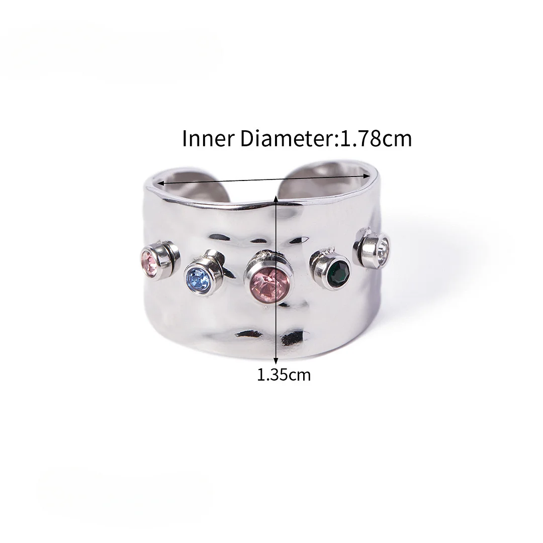 Colorful Zircon Wide Silver Open Ring