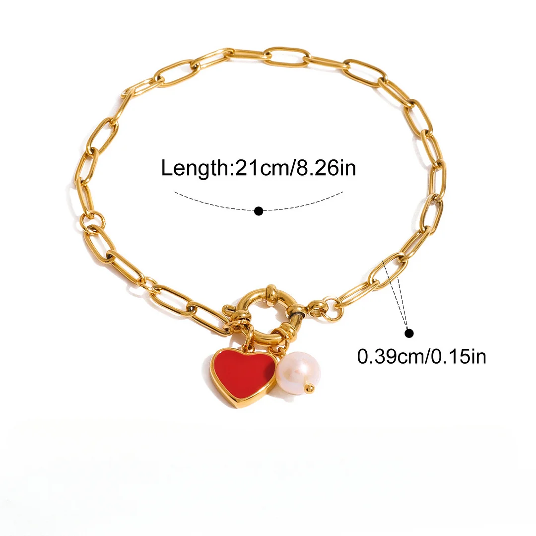 New Red Heart Pearl 18K Golden Bracelet